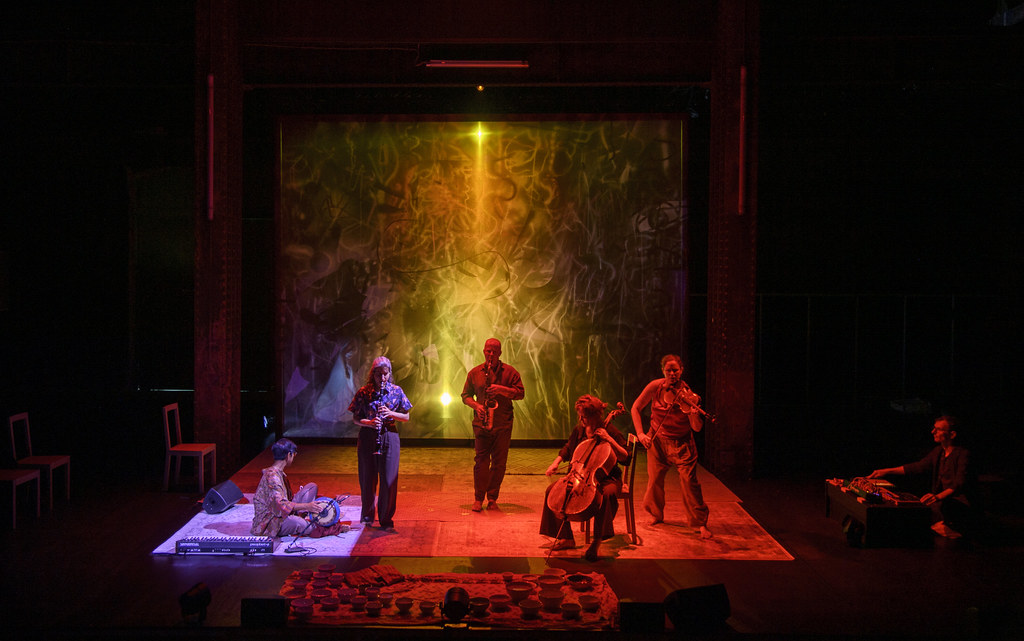 This is key. Each performer had their moment; instruments often carried the narrative more than voices. There were no surtitles for sung texts, only for spoken passages in English, so when text was sung it was as abstract as a violin line, another layer of equality between voices and instruments. Staging followed the same principle: everyone moved, shifted roles, sometimes supporting, sometimes leading. It was a radical departure, especially for singers used to being at the forefront.