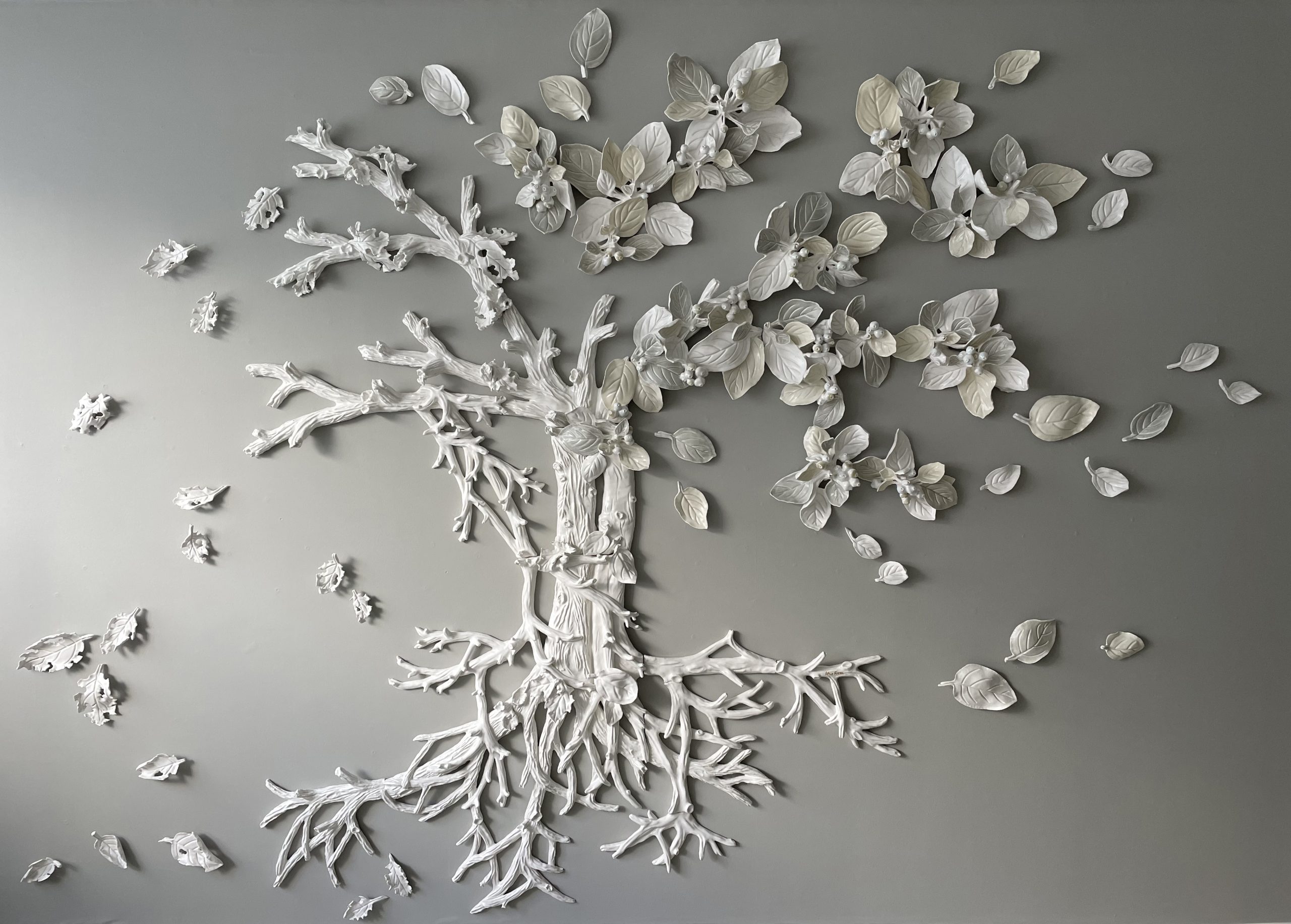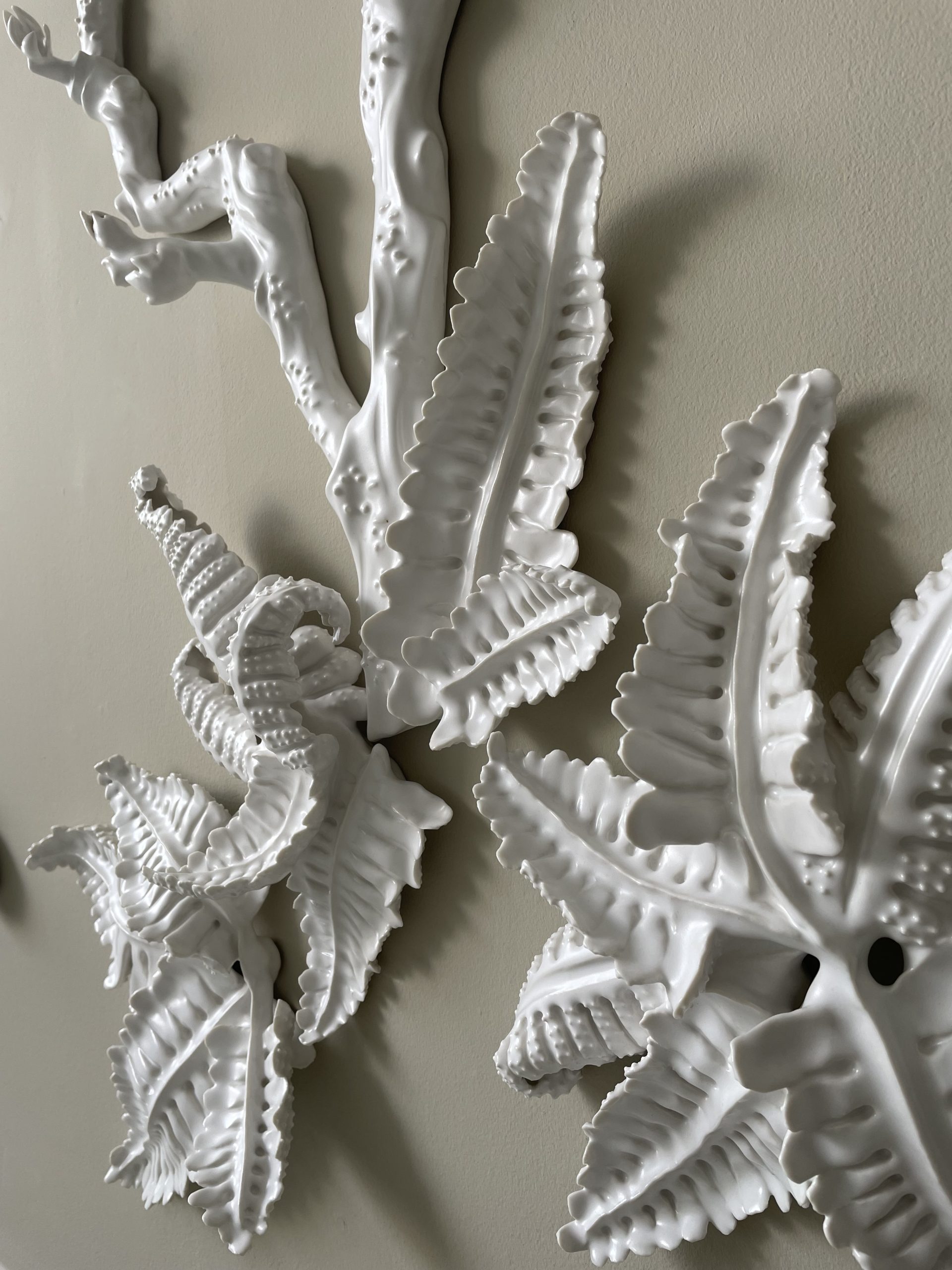 Over the years and through travels related to commissions, particularly in Asia, I developed a passion for the exuberant flora I encountered. Introducing plants into interiors and observing how their inhabitants related to greenery became a powerful creative stimulus. I noticed that this connection is facilitated when the reference is familiar, whether geographically through the representation of local species or emotionally through memories and lived experiences. I found in the vigor of tropical species the intention I strive to infuse into porcelain in my wall works: a sense of movement and expansion, in short, life.