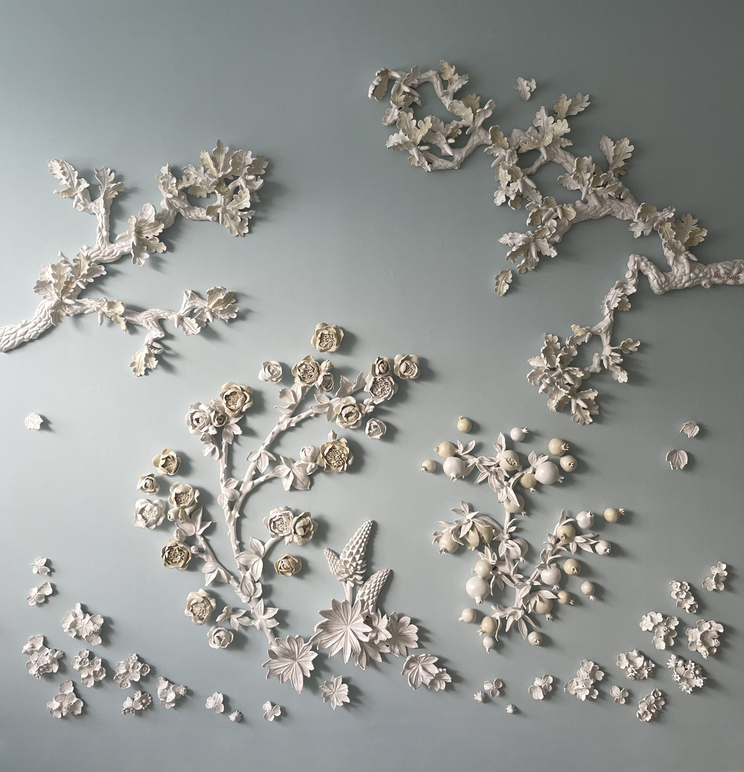 Alice Riehl lives and works in Paris. Her porcelain murals are permanently installed in prestigious locations such as Chaumet store on Place Vendôme in Paris, Intercontinental and Four Seasons Hotels in Marseille and Athens, in the Palazzo Pamphilj in Rome and in the vineyards Château Dauzac in Bordeaux or Jordan in California. Riehl’s artwork is featured in private collections internationally. Her sculptures were displayed at the Palais de Tokyo in Paris or the Homo Faber show in Venice among others. She is represented by Todd Merrill Studio which exhibited her works in major art fairs such as Design Miami or PAD.